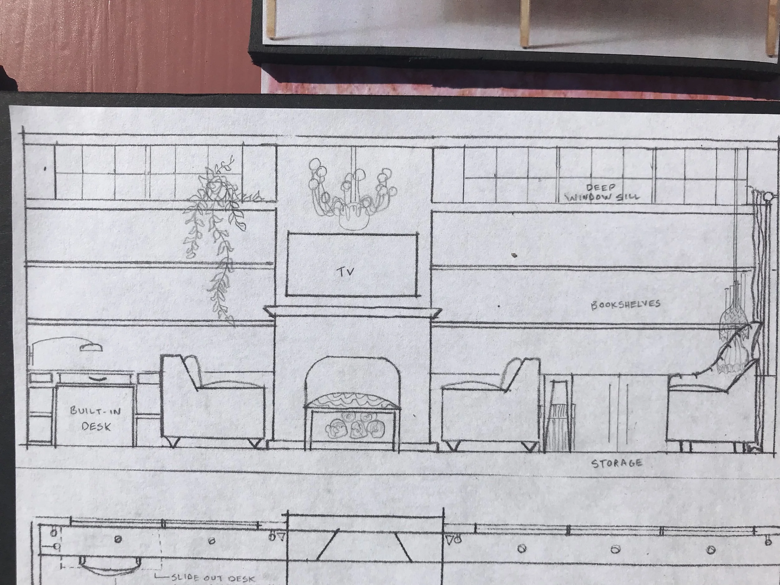 This brief was for a multipurpose entertainment room within a limited yet spacious footprint. Group TV viewing, card game table, reading area, fireplace, desk area.